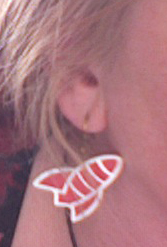 Kis piros bombázógép fülbevalót Lucától kaptam. Amikor kibékültünk. Mert egy férfi miatt egy évig mosolyszünet volt.